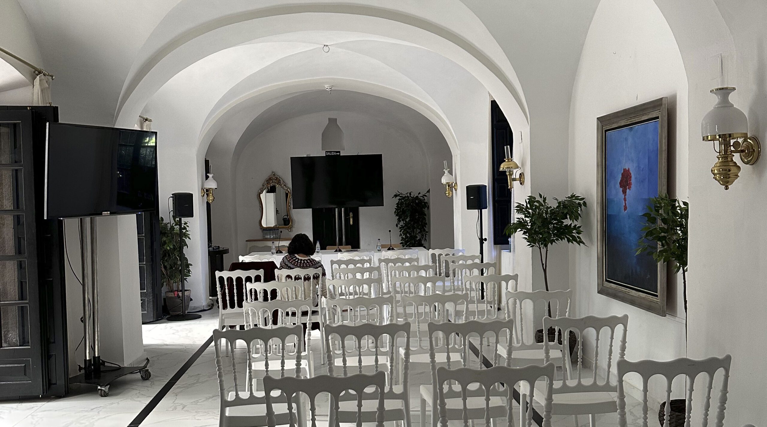 La estructura de cerchas de metal que ahora cubre el invernadero de plantas tropicales fue adquirida tras el incendio del Teatro Novedades de Madrid (el 23 de septiembre de 1928), y reaprovechada se incorporó para cubrir el patio de la casa, creando de esta manera un espacio que durante la década de los treinta del siglo XX que sirvió de salón de baile, en donde se solía reunir lo más granado de la sociedad cacereña.